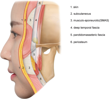 皮膚看起來薄薄一層,但實際上解剖結構可分為 表皮、真皮、淺層脂肪、SMAS筋膜、深層脂肪、韌帶與骨膜等,不同的材質、不同的目的(如填平 vs 撐提),必須注射在正確的層次。施打的層次錯誤是造成動態表情不自然、笑起來像「一塊肉」卡住的主要饅化原因。