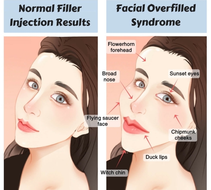 Overfilled Syndrome是指臉部注射填充劑後,因容量過度或注射技術不當,未能與臉部原有的骨骼、脂肪、韌帶結構和諧共處時,造成外觀不協調、組織壓迫、表情受限、甚至慢性發炎與纖維化的臨床狀態(Matarasso & Glogau, 2009)。