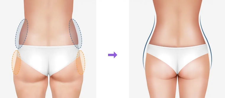 屁股兩側凹陷(又稱髖部凹陷、Hip Dips、大轉子凹陷)多與先天骨架有關。骨盆頂部的髂骨嵴到大腿頂部的股骨大轉子之間本來就存在結構性的轉折區,當外側過渡跨度或骨性轉折較大時,就容易形成臀凹陷斷層感。