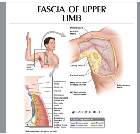 人體腋下由外而內分為:皮膚、皮下脂肪層、淺筋膜以及深層的腋窩空間。
