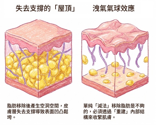 隨著醫療進步,現代體雕美學已經從單純的脂肪減法,進化為利用精準能量重建肌膚底層結構的細膩工程。近年國際醫學會討論焦點是, 如何在抽脂手術後,透過熱能技術來重塑纖維隔膜網路(FSN),解決皮膚鬆弛並強化組織緊實。