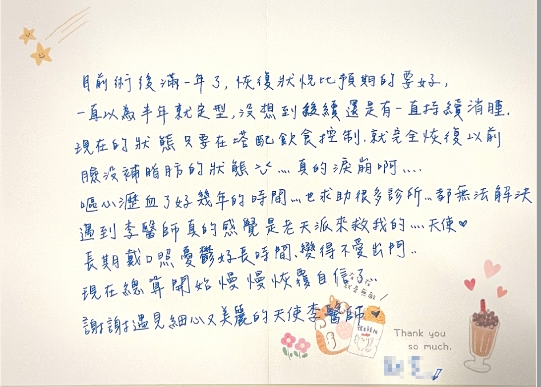 A: 手術當下,就能看到輪廓明顯縮小、線條變順的改變。術後初期會有正常的輕微水腫,約 1 個月消腫 7-8 成,此時臉型已經非常自然。待 3-6 個月皮下組織完全貼合、膠原蛋白增生後,效果最為顯著,您會發現臉部線條變得清晰俐落,徹底告別醫美饅化帶來的充氣感。