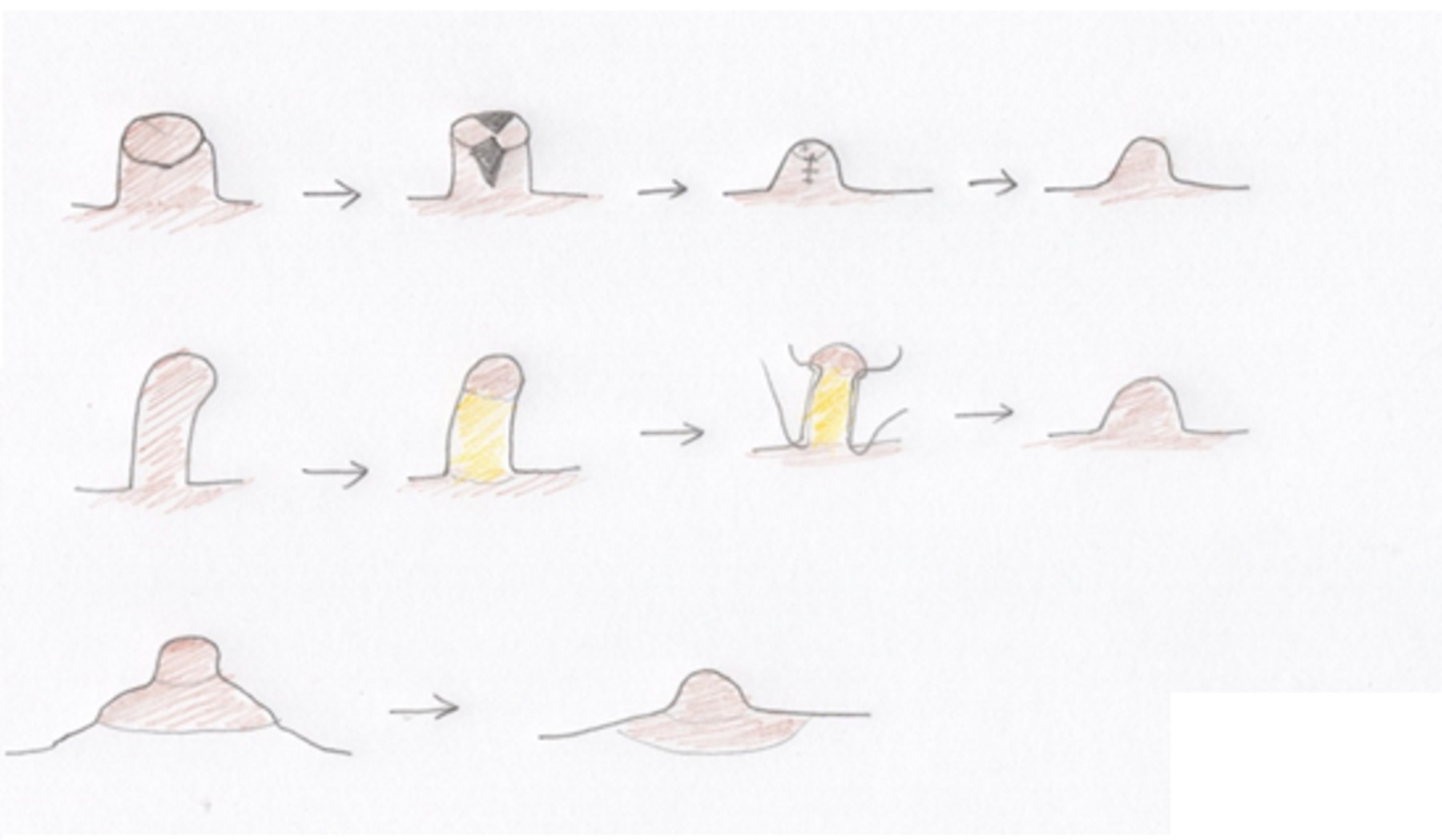 手術方法: 局部的揳形狀切除後縫合。